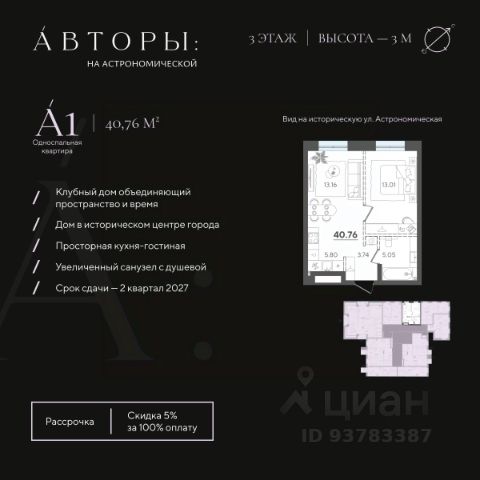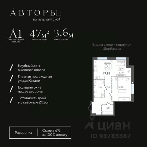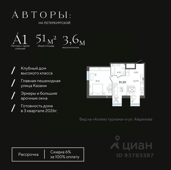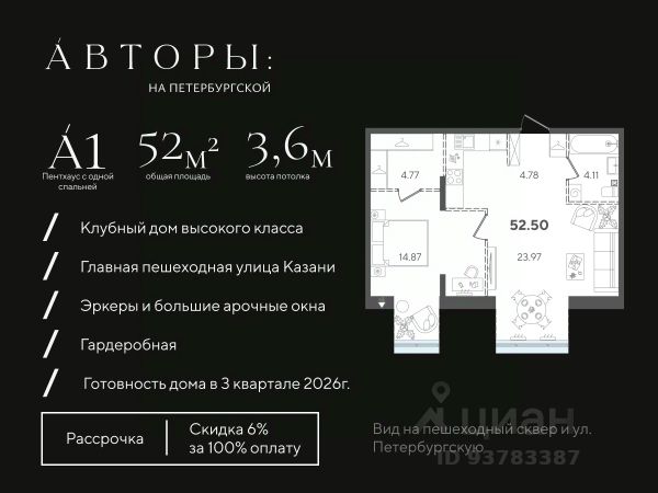 Продается 1-комнатная квартира 6 площадью 48,76 кв.м на 2 этаже проекта "Дом на Исхаки" от "Ак Барс Дом". Купить квартиру можно в ипотеку со ставкой от 4,5%. "Дом на Исхаки" новый жилой комплекс бизнес-класса в историческом центре Казани. Для тех, кто хочет жить в сердце мегаполиса, и при этом сохранить атмосферу приватности. В доме всего 56 квартир. ЖК расположен недалеко от Кремля в окружении необходимой инфраструктуры: в пешей доступности бизнес-центры, Академический лицей им. Лобачевского и другие школы, федеральные университеты, детские сады, Большой драматический театр, ЦУМ, ТРК "Кольцо", спортивные и медицинские центры. Проект "Дом на Исхаки" это премиальный комфорт. Уютный двор с детской площадкой и возможностями для спокойного отдыха, подземный паркинг с современной системой охраны и удобным заездом по считыванию номеров. Эффектная входная группа впечатляет: художественная подсветка фасадов, панорамное остекление, лаунж-зоны с мягкими диванами, система антиобледенения при входе. Вместительная колясочная и гостевой санузел в холле. В проекте высокие потолки до 3 м и до 4,4 м на мансардном этаже, просторные видовые террасы. Увеличенные окна и стекла с нанонапылением повышают шумоизоляцию, делают жилое пространство светлее и теплее, помогают сократить расходы на отопление. Комфортная и продуманная 1-комнатная квартира с евро-кухней. Удачное зонирование позволяет разделить гостевое и кухонное пространство, скрыв рабочие процессы. В проекте отдельная спальная комната и просторная входная зона, где можно не только разместить шкаф-купе и удобные придверные пуфы, но и воплотить любые дизайнерские задумки. Видеонаблюдение по периметру дома, в лифтах, в подъезде и на парковке. Система IP-домофонии с функцией Face-ID. В квартиры установлены стильные вызывные панели со встроенной камерой. Через приложение вы можете наблюдать, что происходит перед дверью квартиры и удаленно открывать дверь в подъезде своим гостям. Мы сделали все, чтобы придать Вашей мечте форму дома. Дом там, где мы. Продам 1-комнатную квартиру в новостройке в районе Вахитовский в городе Казань.