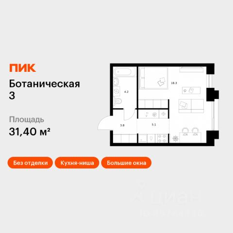 Продаётся 1-комн. квартира площадью 35,7 кв.м на 4 этаже 10 этажного дома (Корпус 2, Секция 8) проекта ПИК Ботаническая 3. Светлый просторный подъезд на уровне земли, функциональная планировка, большие окна, без отделки. "Ботаническая 3" — камерный проект бизнес-класса в культурном центре Казани. Здесь каждая деталь продумана до мелочей: от авторской архитектуры с арт-объектом на фасаде до гранд-лобби с камином и коворкингом для переговоров. Пешеходные галереи с ресторанами и кафе на улице Шаляпина станут новой точкой притяжения района. А в приватном пространстве двора раскинется природный амфитеатр, где каждый сможет стать режиссёром своего досуга. Артикул 995164 Продается 1-комнатная квартира первичка в районе Приволжский в городе Казань.