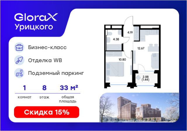 Продаётся 1-комнатная квартира в строящемся доме (Корпус 1), срок сдачи: II-кв. 2028, общей площадью 31.18 кв.м., на 7 этаже. GloraX Урицкого - это новый квартал, рожденный в сердце Московского района Казани, там, где встречаются энергия большого города и тишина старых парков. Проект создает пространство для тех, кто хочет чувствовать себя в центре событий, но при этом возвращаться домой в атмосферу уюта и спокойствия. Главная идея комплекса - гармония города и природы. Здесь архитектура строгих линий сочетается с зеленью двора, напоминающего природный лесопарк, где воплощается многообразие сценариев жизни: от утренней зарядки в зоне воркаута до вечерних прогулок по уютным аллеям и встреч в комьюнити-центре. GloraX Урицкого становится главной доминантой района, новым символом современности, задающим новый уровень качества городской среды. Переменная этажность открывает панорамы города, а динамичные фасады придают ансамблю элегантность и стройность. Этот проект словно открывает новую главу в истории Московского района.