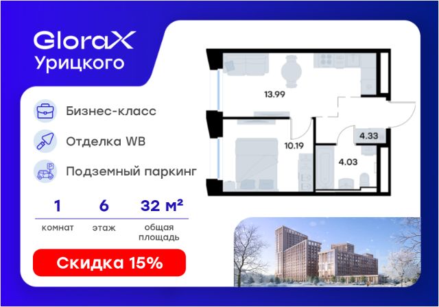 Продается 1-комн. квартира на 10-м этаже в квартале бизнес-класса GloraX Урицкого. Общая площадь лота составляет 31,69 кв. м, из которых 10,36 кв. м отведено под жилую и 11,54 кв. м под кухонную зону. Номер квартиры - 450 GloraX Урицкого это идеальное сочетание динамики мегаполиса и камерности района, где каждое утро начинается легко, а каждый вечер наполнен ощущением дома Преимущества квартиры: однокомнатная квартира; высокий этаж; остекленная лоджия; вид на город. Преимущества, которые изменят вашу жизнь: • Собственная инфраструктура: Всё для комфорта и досуга, не выходя за территорию проекта • Безопасность 24/7: Закрытая территория, видеонаблюдение, система "Умный дом" • Безбарьерная среда: Забота о каждом жителе, независимо от возраста • Футуристичные лобби: Эстетика и комфорт с первых шагов в вашем доме. • Колясочные в каждой секции: Больше пространства в ваших квартирах • Квартиры в отделке White Box: Готовый холст для реализации дизайнерских идей. • Благоустройство в стиле лесопарка: эко-пространство, где природа становится частью повседневной жизни. GloraX Урицкого это проект бизнес-класса для тех, кто живёт в ритме большого города, но ждёт безмятежности у себя дома. Здесь всё важное происходит рядом с вами: работа, встречи, спортивные и культурные активности, прогулки, образование и обучение. Здесь вы ощутите, что вы наконец-то дома — в доме, которого давно ждали. Стоимость действительна при 100% оплате или стандартной ипотеке.