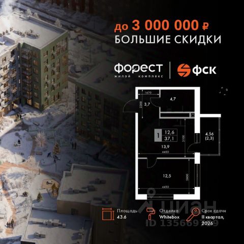 Прямая продажа от застройщика! Корпус 1.1 сдан! Жилой Комплекс комфорт-класса. Продаётся 1-к квартира номер 35 общей площадью 35.4 кв.м. на 5-м этаже 7 этажного здания. Отделка Whitebox. Цена с учётом скидки. Особенности квартиры: Квартира с предчистовой отделкой (White box). Вам не придется заниматься черновыми и трудоёмкими работы, а чистовую отделку и дизайн - сделайте на свой вкус. Информация о комплексе: "Форест" - жилой комплекс комфорт-класса, созданный для тех, кто ищет гармонию с природой, не отказываясь от городского ритма. Расположенный в окружении леса и реки, он воплощает мечту о загородной жизни со всеми удобствами города. Здесь можно проживать самые тёплые моменты с близкими, дышать свежим хвойным воздухом, встречать утро на собственной террасе или проводить вечера с друзьями под открытым небом. Благоустроенная территория, прогулочные дорожки и зоны отдыха создают атмосферу уюта и гармонии. Поблизости - лес и Волга, куда можно выбраться на прогулку в любое время, не дожидаясь выходных. Благодаря вечнозелёным растениям и продуманному озеленению, дворы остаются зелёными круглый год. Транспортная доступность: - 4 мин. пушком до автобусной остановки - 5 мин. на машине до школы Внутренняя инфраструктура: Продуманное пространство для жизни, отдыха и развития. На территории комплекса работает собственный детский сад - современное и безопасное пространство, где дети всегда рядом с родителями. Во дворе установлены игровые комплексы для активных прогулок и развития малышей на свежем воздухе. Жителям доступны кафе и магазины, площадки для прогулок с питомцами, зоны для пикников и барбекю. Для любителей активного образа жизни предусмотрены велодорожки, воркаут-зоны и тропы для хайкинга, а в шаговой доступности находятся планетарий и глэмпинг. Просторный двор без машин и закрытая территория с системой контроля доступа обеспечивают высокий уровень безопасности и приватности. Здесь можно по-настоящему расслабиться и чувствовать себя дома - в окружении природы, комфорта и заботы о каждом дне.