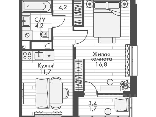 — Жилая площадь - 16,3 кв.м