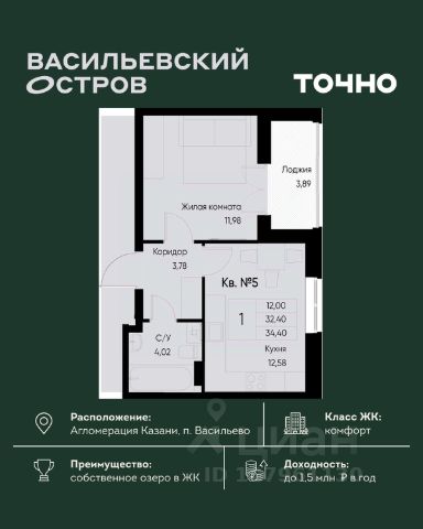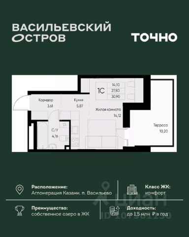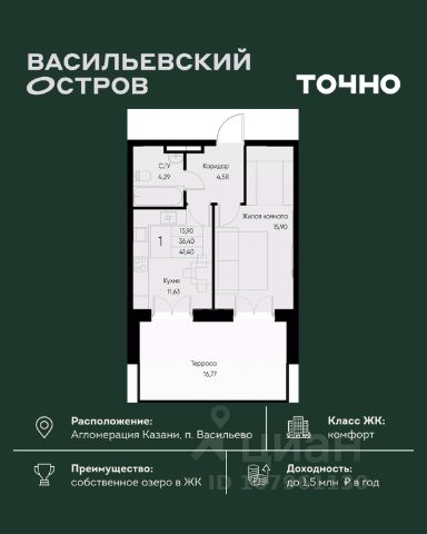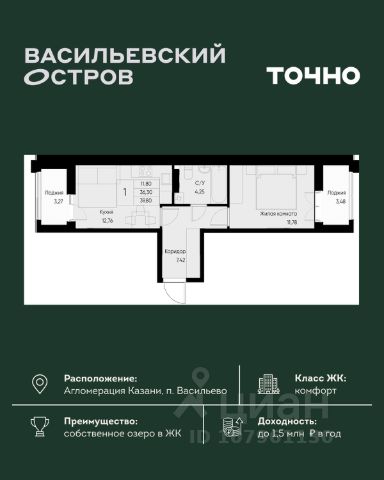 ЖК "Васильевский остров" — масштабный проект ТОЧНО в Казанской агломерации. Просторная территория 88 Га спроектирована для комфортной жизни: озеро с набережной и пляжем, каток, зелёные маршруты. В проекте комплекса — школа на 1 224 места, 2 детских сада на 680 мест, детская и взрослая поликлиники, фитнес-центр с бассейном, термальный комплекс, фермерский рынок, магазины, кафе и рестораны.
