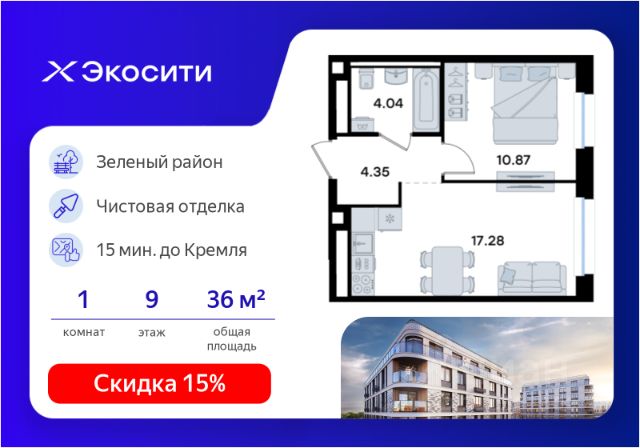 Продается 1-комн. квартира на 9-м этаже в строящемся проекте GloraX Экосити. Общая площадь лота составляет 36,54 кв. м, из которых 10,87 кв. м отведено под жилую и 17,28 кв. м под кухонную зону. Номер квартиры - 52 Преимущества квартиры: • Квартира с полностью чистовой отделкой. В комнатах и коридоре: - натяжной потолок, - стены оклеены обоями под покраску, - полы: ламинат, плинтусы и напольная плитки - установлены межкомнатные двери и подоконники. В санузлах: - на стенах - керамогранитная плитка и/или окраска водостойкой краской - на полу - керамогранитная плитка; - натяжной потолок - сантехника: ванна и экран под ванну/душевой поддон, унитаз, раковины и смесители, монтаж водопровода и канализации - Предусмотрен расширенный пакет системы Умный Дом: бесключевой доступ в подъезд, видеодомофон с функцией Face ID, видеонаблюдение, автоматизированный сбор и передача показаний счётчиков; - Внутренние дворы каждого урбан-блока закрытые, благоустройство по индивидуальному проекту. - На территории квартала предусмотрено строительство детского сада на 360 мест, школы на 1501 место, ДОУ на 2000 мест. - На первых этажах домов запроектированы коммерческие помещения - предусмотрены места для супермаркетов, бытовых услуг, кафе. - Собственный комьюнити-центр для жителей жилого комплекса - бульвар "Река между камней" с плейхабом для детей, амфитеатром, спортивными зонами, аллеей достижений. Всем посетителям будет доступен иммерсивный маршрут и AR-игры. - лесная прогулочная аллея вдоль которой расположатся зоны тихого отдыха, йоги и медитаций - 2 смотровые площадки - специальная зона для выгула собак - В жилом комплексе предусмотрено строительство 2 многоэтажных паркингов на 300 и 360 машиномест. Всем жителям проекта доступен и привычный плоскостной паркинг вокруг территории проекта с возможностью в приложении дома получить информацию о наличии парковочных мест. GloraX Экосити — это совершенство города в первозданной природе. Наполненный возможностями район, в котором вы не выбираете между городом или природой, семьей или работой, отдыхом или спортом, — вы берете всё сразу. Каждая семья, каким бы составом она ни жила, найдет для себя идеальное пространство. Планировочные решения запроектированы с просторной кухней-гостиной, чтобы семья могла комфортно проводить время вместе. В целях безопасности в детских комнатах отсутствуют балконы и лоджии. Квартиры сдаются с современной качественной отделкой, что позволяет после сдачи дома сразу начать жить, избежав долгих самостоятельных ремонтов. Цветовые решения и стиль отделки можно выбрать при покупке квартиры. Цена указана при 100% оплате или стандартной ипотеке. Узнайте подробности в Отделе продаж. 1-комнатная квартира в микрорайоне Красная горка в городе Казань.