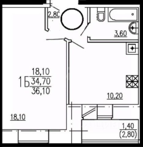 просторная квартира (площадь квартиры без учета лоджии составляет 43,93 кв. м, из которых 18,43 кв. м.- жилая площадь, а 14,34 кв. м - кухня) с функциональной планировкой, изолированными комнатами