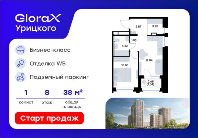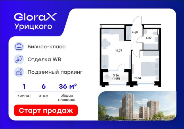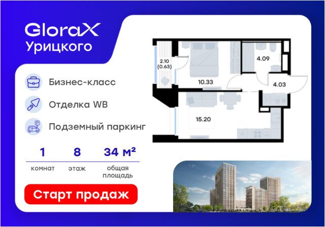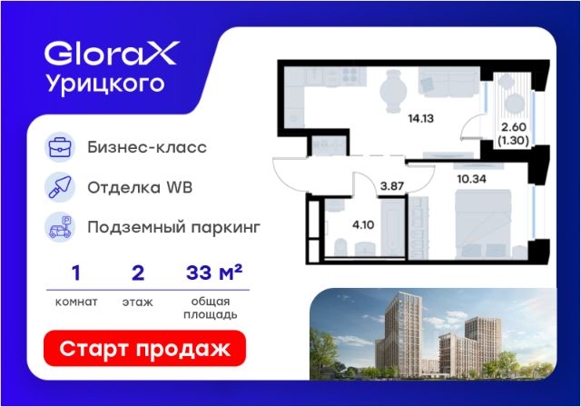 Продается 1-комн. квартира на 2-м этаже в квартале бизнес-класса GloraX Урицкого. Общая площадь лота составляет 33,74 кв. м, из которых 10,34 кв. м отведено под жилую и 14,13 кв. м под кухонную зону. Номер квартиры - 8 GloraX Урицкого это идеальное сочетание динамики мегаполиса и камерности района, где каждое утро начинается легко, а каждый вечер наполнен ощущением дома Преимущества квартиры: евро-двухкомнатная квартира; остекленная лоджия; вид во двор. Преимущества, которые изменят вашу жизнь: • Собственная инфраструктура: Всё для комфорта и досуга, не выходя за территорию проекта • Безопасность 24/7: Закрытая территория, видеонаблюдение, система "Умный дом" • Безбарьерная среда: Забота о каждом жителе, независимо от возраста • Футуристичные лобби: Эстетика и комфорт с первых шагов в вашем доме. • Колясочные в каждой секции: Больше пространства в ваших квартирах • Квартиры в отделке White Box: Готовый холст для реализации дизайнерских идей. • Благоустройство в стиле лесопарка: эко-пространство, где природа становится частью повседневной жизни. GloraX Урицкого это проект бизнес-класса для тех, кто живёт в ритме большого города, но ждёт безмятежности у себя дома. Здесь всё важное происходит рядом с вами: работа, встречи, спортивные и культурные активности, прогулки, образование и обучение. Здесь вы ощутите, что вы наконец-то дома — в доме, которого давно ждали. Стоимость действительна при 100% оплате или стандартной ипотеке. Купить 1-комнатную квартиру в микрорайоне поселок Урицкого в городе Казань.