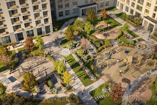 Пространство дома будет разделено на два уровня. Первый — общественный, с рестораном, входными группами и заездами в паркинг. Второй уровень — приватный. Здесь — лаунж-зоны, фонтан, игровые площадки, спортивное поле, интерактивные элементы и стена для рисования мелками. Пространство продумано так, чтобы жители чувствовали тишину, безопасность и гармонию — в центре города, но в ритме своего комфорта.