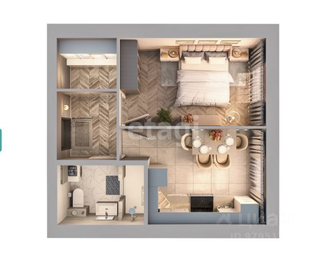 Просторная светлая жилая комната 17,64, кухня 17, 64 кв.м.с выходом на лоджию, прихожая 4,37 кв.м, совмещенный санузел 5,19 кв.м., лоджия 2,08 кв.м. Высота потолка в квартире - 2,7 м.
