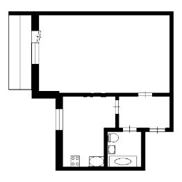 • комната 16,4кв.м, кухня 11кв.м, санузел 4,1кв.м, прихожая 9кв.м, гардеробная зона 2,8кв.м;
