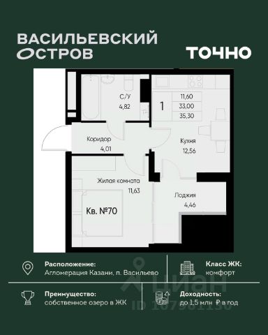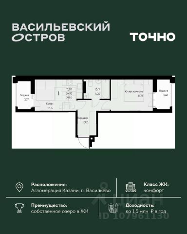 • ✓ В базе объявлений Циан 70 1-комнатных квартир в поселке городского типа Васильево республики Татарстан.