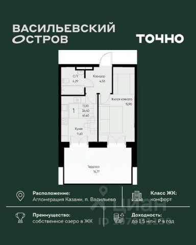 ЖК "Васильевский остров" — масштабный проект ТОЧНО в Казанской агломерации. Просторная территория 88 Га спроектирована для комфортной жизни: озеро с набережной и пляжем, каток, зелёные маршруты. В проекте комплекса — школа на 1 224 места, 2 детских сада на 680 мест, детская и взрослая поликлиники, фитнес-центр с бассейном, термальный комплекс, фермерский рынок, магазины, кафе и рестораны.
