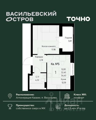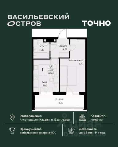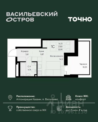 ЖК "Васильевский остров" — масштабный проект ТОЧНО в Казанской агломерации. Просторная территория 88 Га спроектирована для комфортной жизни: озеро с набережной и пляжем, каток, зелёные маршруты. В проекте комплекса — школа на 1 224 места, 2 детских сада на 680 мест, детская и взрослая поликлиники, фитнес-центр с бассейном, термальный комплекс, фермерский рынок, магазины, кафе и рестораны.