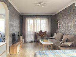 - Большая жилая комната 17.4м2 с двумя окнами, комфортная кухня 8.8м2, имеется отдельная гардеробная 2.1м2;