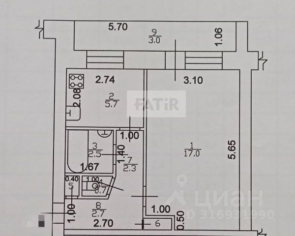 Квартира расположена на последнем этаже трёхэтажного кирпичного дома 1973 года постройки. Общая площадь — 20,5 кв. м, из которых 12 кв. м занимает жилая площадь, а 4,5 кв. м — кухня. В квартире сделан косметический ремонт, комнаты изолированы, окна выходят на улицу, солнечная сторона.