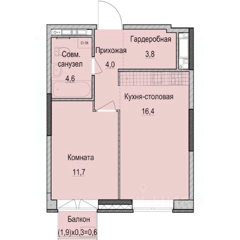 Продается просторная 1-комнатная квартира площадью 39.9 м² на 6 этаже в современном ЖК Фермаполис! Комфорт-класс!