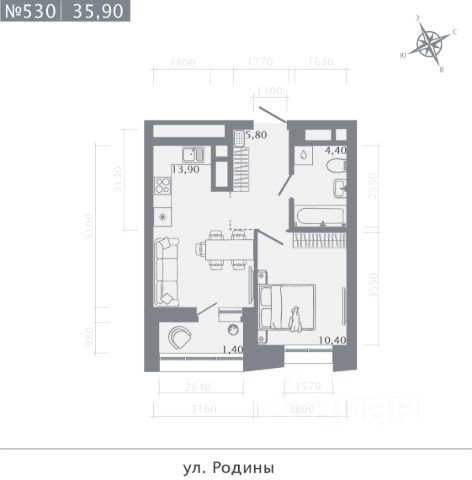 Продаётся 1-комнатная квартира в строящемся доме (Корпус 2), срок сдачи: I-кв. 2029, общей площадью 35.9 кв.м., на 13 этаже.