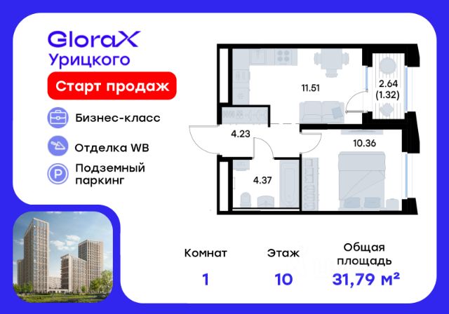 Продается 1-комн. квартира на 6-м этаже в квартале бизнес-класса GloraX Урицкого. Общая площадь лота составляет 32,54 кв. м, из которых 10,19 кв. м отведено под жилую и 13,99 кв. м под кухонную зону. Номер квартиры - 40 GloraX Урицкого это идеальное сочетание динамики мегаполиса и камерности района, где каждое утро начинается легко, а каждый вечер наполнен ощущением дома Преимущества квартиры: евро-двухкомнатная квартира; вид на улицу. Преимущества, которые изменят вашу жизнь: • Собственная инфраструктура: Всё для комфорта и досуга, не выходя за территорию проекта • Безопасность 24/7: Закрытая территория, видеонаблюдение, система "Умный дом" • Безбарьерная среда: Забота о каждом жителе, независимо от возраста • Футуристичные лобби: Эстетика и комфорт с первых шагов в вашем доме. • Колясочные в каждой секции: Больше пространства в ваших квартирах • Квартиры в отделке White Box: Готовый холст для реализации дизайнерских идей. • Благоустройство в стиле лесопарка: эко-пространство, где природа становится частью повседневной жизни. GloraX Урицкого это проект бизнес-класса для тех, кто живёт в ритме большого города, но ждёт безмятежности у себя дома. Здесь всё важное происходит рядом с вами: работа, встречи, спортивные и культурные активности, прогулки, образование и обучение. Здесь вы ощутите, что вы наконец-то дома — в доме, которого давно ждали. Стоимость действительна при 100% оплате или стандартной ипотеке.