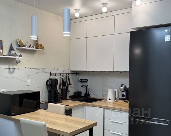 Удобная планировка особенно радует большая кухня 12,6 м , светлая уютная комната правильной прямоугольной формы - 17,2 м, прихожая с гардеробной - 9 м, совмещенный санузел в плитке 3,6 м , просторная лоджия.