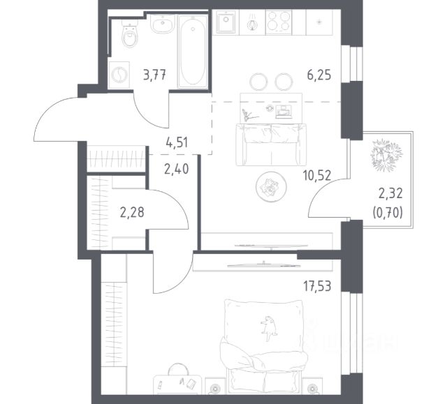 Строим кварталы для жизни с заботой о будущем. Предлагается 1-комнатная квартира комфорт-класса площадью 34.17 кв.м в корпусе 5КВ на 14-м этаже, в жилом комплексе "Манзара". Выбирайте свое место для счастливой жизни: от уютной однокомнатной до просторной 4-комнатной квартиры евроформата. Хотите погрузиться в творческий процесс ремонта? Присмотритесь к вариантам предчистовой отделки. Если хотите сразу отпраздновать новоселье, поручите нам работы по отделке. Мы установим двери, окна и сантехнику, положим ламинат и плитку. На стенах будут обои, которые можно перекрашивать до 8 раз. По вашему желанию мы подготовим в вашей квартире все для комфортной жизни. Откройте дверь своим ключом и пройдитесь по комнатам. Там уже будет мебель, светильники и другие элементы декора. А на кухне бежевых оттенков есть все, чтобы сразу приготовить вкусный ужин для близких. Приобрести квартиры возможно по специальным акциям от застройщика, с текущими условиями акций можно ознакомиться в блоке "Акций". Цена динамическая и может отличаться, уточняйте актуальность у застройщика. Манзара — это дома высотой от 7 до 24 этажей. В увеличенных окнах с зеркальной поверхностью отражаются облака и солнечные блики. Тихий двор с игровыми площадками и воркаут-пространством идеален для прогулок с кофе. На первом этаже есть выход на стилобат, где появятся зеленые оазисы и открытые террасы. Дома соединяет между собой частично прозрачный пешеходный мост. Предусмотрены подземный и 6-этажный многоуровневый паркинги. До ж/д вокзалов можно доехать за 20 минут. Или в обеденный перерыв встретиться с друзьями в центре города — дорога на машине займет около 15 минут. На первых этажах корпусов откроется детская поликлиника, ФОК с бассейном, магазины, кафе и салоны красоты. Для маленьких жителей уже работают 3 детских сада и лицей, до которых можно дойти за 615 минут. Во всех наших корпусах входы в светлые лобби находятся на уровне земли. На первом этаже есть специальные места для хранения колясок и велосипедов.