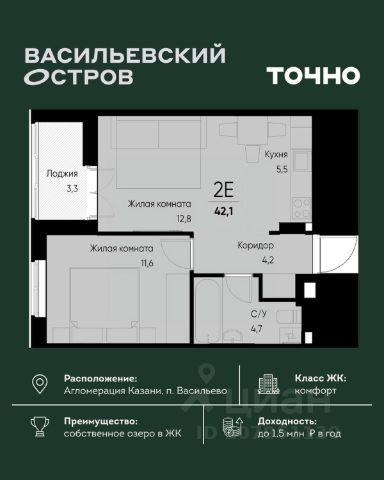Покупайте квартиру в ЖК Станция Спортивная по специальному предложению: Способы покупки: 1. Ипотека от 5400 рублей в месяц! 2. Семейная ипотека под 3,5% 3. Беспроцентная рассрочка 4. Рассрочка на квартиры в сданных домах до 7 лет 5. Ипотека для IT-специалстов 6% 6. Программа Trade-in 7. Программа "Выкуп квартиры" 8, Выгода до 20000 руб. с каждого кв.м. 9. Выгода до 5.6 млн. руб. в ЖК "Времена Года" Покупка защищена ФЗ 214 с использованием эскроу счетов. Жилой комплекс комфорт-класса "Станция Спортивная" — мини-город в экологически чистом районе рядом с с.Усады (Лаишевский район). Концепция микрогорода в городе позволила создать самодостаточный жилой комплекс с собственной инфраструктурой, в которую, помимо жилых домов и объектов социальной среды, также входит развитая спортивная инфраструктура. ЖК "Станция Спортивная" входит в состав микрорайона "Суварово". Микрорайон "Суварово" объединяет 3 жилых комплекса в единую передовую среду с развитой инфраструктурой, где все необходимое рядом. Мультимодальная транспортная сеть позволит Вам добраться до центра города за 20 мин на электричке или маршрутах общественного транспорта. Время поездки на автомобиле займет: до аэропорта - 15 мин, до РКБ 10 мин, до центра города 22 мин. В ЖК "Станция Спортивная" вас ждет развитая инфраструктура: 9 детских садов (1 функционирует), 3 школы (в проекте), многофункциональный торговый комплекс и наземный паркинг (в проекте), супермаркет "Магнит" в шаговой доступности. Главная особенность жилого комплекса "Станция Спортивная" — оздоровительная инфраструктура, которая включает в себя профессионально оборудованные площадки для спортивных игр и тренировок, канатную дорогу, велотреки, теннисные корты, уличные спортивные снаряды для воркаут-тренировок, лыжные трассы и места для медитации и занятий йогой. Каждый житель найдет себе увлечение по душе! Комплекс располагается в экологичном месте — рядом с Усадским лесом. Поблизости нет никаких производств и шумных автотрасс. Из окон зданий открываются красивые панорамные пейзажи. Это место для здоровой активной жизни, которую в одинаковой мере оценят семьи с детьми, соло-жители и пенсионеры. Жилой комплекс представлен многоэтажными домами высотой 11-19 этажей. В ЖК "Станция Спортивная" реализованы уникальные планировочные решения круговая планировка и двухуровневые квартиры никого не оставят равнодушными. ЖК "Станция Спортивная" здесь ценят уют, активность и добрососедство! Покупка защищена ФЗ 214 с использованием эскроу счетов. Продается 2-комнатная квартира 40 м2 в республике Татарстан.