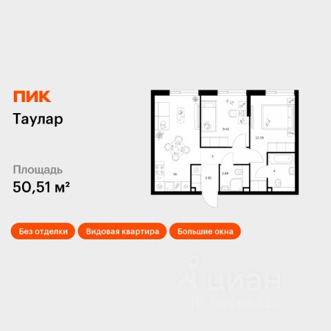 Продаётся 2-комн. квартира площадью 50,9 кв.м на 6 этаже 16 этажного дома (Корпус 3, Секция 1) проекта ПИК Сиберово. Светлый просторный подъезд на уровне земли, функциональная планировка, большие окна, предчистовая отделка. "Сиберово" - жилой квартал на улице Журналистов с парками в каждом дворе, школой и двумя детскими садами. До центра Казани - 15 минут пути на машине. Переменная высота домов от 7 до 26 этажей создаёт ощущение простора, а солнечному свету позволяет беспрепятственно проникать во дворы и квартиры. С верхних этажей откроется панорамный вид на реку Казанку, "Ак Барс Арену" и центр семьи "Казан". Жилой квартал отметили на форуме "Казаныш", где награждают лучшие архитектурные проекты Казани. В 2023 году проект оказался в двух номинациях: "Лучшее благоустройство территорий" и "Лучшая архитектурно-градостроительная подсветка". В "Сиберово" будет всё необходимое для комфортной жизни: на первых этажах разместятся магазины, кафе и полезные сервисы. Внутри жилого квартала запланировано строительство школы и двух детских садов. Для удобства жителей будут подземные паркинги в каждом доме, четыре наземных многоуровневых паркинга, индивидуальные кладовые и колясочные. В каждом дворе будет парк - тихое приватное пространство для жителей, где можно расслабиться после рабочего дня. Здесь красиво и уютно в любое время года. Через весь квартал протянется широкий пешеходный бульвар с велодорожками, велопарковками, зонами для отдыха, детскими и спортивными площадками. Входы в подъезды в "Сиберово" сделаны на уровне земли: по территории квартала удобно перемещаться и пешком, и на самокате, и с коляской. Первые этажи просторные и светлые: панорамное остекление пропускает много естественного света, а высота потолков доходит до пяти метров. Все квартиры сдаются в предчистовой отделке: с ровными белыми стенами, готовой гидроизоляцией, стяжкой полов, разводкой систем отопления, с окнами с надёжным пластиковым профилем. Вам останется только выбрать цвета и материалы для косметического ремонта, чтобы оформить квартиру на свой вкус. Вокруг "Сиберово" развитый район города: рядом детские сады, школы, колледж, поликлиники и торговые центры. До центра отсюда всего 15 минут на машине. Артикул 1025098 (Застройщик ООО "СЗ МТ ДЕВЕЛОПМЕНТ") Продается 2-комнатная квартира 50 м2 в Казани.