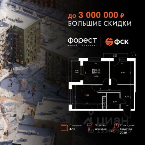 Прямая продажа от застройщика! Корпус 1.1 сдан! Жилой Комплекс комфорт-класса. Продаётся 2-к квартира номер 10 общей площадью 45.8 кв.м. на 2-м этаже 7 этажного здания. Отделка Whitebox. Цена с учётом скидки. Особенности квартиры: Квартира с предчистовой отделкой (White box). Вам не придется заниматься черновыми и трудоёмкими работы, а чистовую отделку и дизайн - сделайте на свой вкус. Информация о комплексе: "Форест" - жилой комплекс комфорт-класса, созданный для тех, кто ищет гармонию с природой, не отказываясь от городского ритма. Расположенный в окружении леса и реки, он воплощает мечту о загородной жизни со всеми удобствами города. Здесь можно проживать самые тёплые моменты с близкими, дышать свежим хвойным воздухом, встречать утро на собственной террасе или проводить вечера с друзьями под открытым небом. Благоустроенная территория, прогулочные дорожки и зоны отдыха создают атмосферу уюта и гармонии. Поблизости - лес и Волга, куда можно выбраться на прогулку в любое время, не дожидаясь выходных. Благодаря вечнозелёным растениям и продуманному озеленению, дворы остаются зелёными круглый год. Транспортная доступность: - 4 мин. пушком до автобусной остановки - 5 мин. на машине до школы Внутренняя инфраструктура: Продуманное пространство для жизни, отдыха и развития. На территории комплекса работает собственный детский сад - современное и безопасное пространство, где дети всегда рядом с родителями. Во дворе установлены игровые комплексы для активных прогулок и развития малышей на свежем воздухе. Жителям доступны кафе и магазины, площадки для прогулок с питомцами, зоны для пикников и барбекю. Для любителей активного образа жизни предусмотрены велодорожки, воркаут-зоны и тропы для хайкинга, а в шаговой доступности находятся планетарий и глэмпинг. Просторный двор без машин и закрытая территория с системой контроля доступа обеспечивают высокий уровень безопасности и приватности. Здесь можно по-настоящему расслабиться и чувствовать себя дома - в окружении природы, комфорта и заботы о каждом дне.
