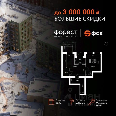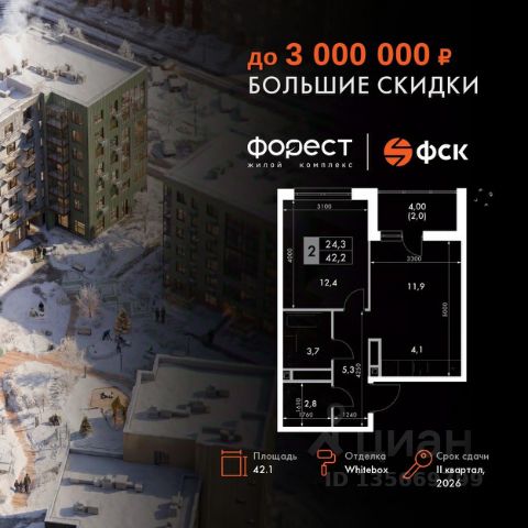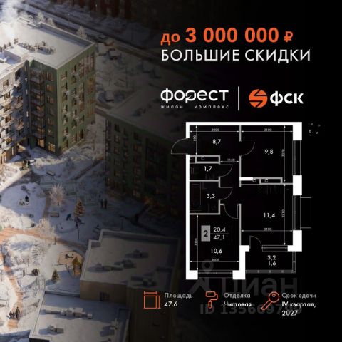 Прямая продажа от застройщика! Корпус 1.1 сдан! Жилой Комплекс комфорт-класса. Продаётся 2-к квартира номер 10 общей площадью 45.8 кв.м. на 2-м этаже 7 этажного здания. Отделка Whitebox. Цена с учётом скидки. Особенности квартиры: Квартира с предчистовой отделкой (White box). Вам не придется заниматься черновыми и трудоёмкими работы, а чистовую отделку и дизайн - сделайте на свой вкус. Информация о комплексе: "Форест" - жилой комплекс комфорт-класса, созданный для тех, кто ищет гармонию с природой, не отказываясь от городского ритма. Расположенный в окружении леса и реки, он воплощает мечту о загородной жизни со всеми удобствами города. Здесь можно проживать самые тёплые моменты с близкими, дышать свежим хвойным воздухом, встречать утро на собственной террасе или проводить вечера с друзьями под открытым небом. Благоустроенная территория, прогулочные дорожки и зоны отдыха создают атмосферу уюта и гармонии. Поблизости - лес и Волга, куда можно выбраться на прогулку в любое время, не дожидаясь выходных. Благодаря вечнозелёным растениям и продуманному озеленению, дворы остаются зелёными круглый год. Транспортная доступность: - 4 мин. пушком до автобусной остановки - 5 мин. на машине до школы Внутренняя инфраструктура: Продуманное пространство для жизни, отдыха и развития. На территории комплекса работает собственный детский сад - современное и безопасное пространство, где дети всегда рядом с родителями. Во дворе установлены игровые комплексы для активных прогулок и развития малышей на свежем воздухе. Жителям доступны кафе и магазины, площадки для прогулок с питомцами, зоны для пикников и барбекю. Для любителей активного образа жизни предусмотрены велодорожки, воркаут-зоны и тропы для хайкинга, а в шаговой доступности находятся планетарий и глэмпинг. Просторный двор без машин и закрытая территория с системой контроля доступа обеспечивают высокий уровень безопасности и приватности. Здесь можно по-настоящему расслабиться и чувствовать себя дома - в окружении природы, комфорта и заботы о каждом дне.