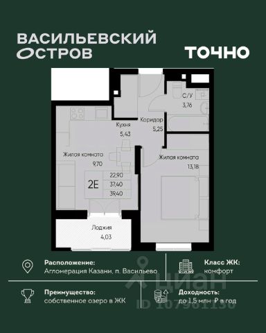 - Просторная кухня-гостиная площадью 34,3 кв.м., идеально подходит для семейных ужинов и приёма гостей.