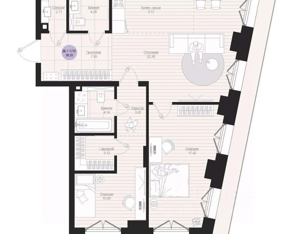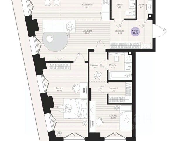 Q на Кулагина Жилой комплекс от компании "Унистрой" расположен в Приволжском районе Казани, на улице Кулагина, в активно застраиваемой и развивающейся части города. "Q на Кулагина" включает дома переменной высотности 9-20 этажей, фасады с подсветкой, дворы-парки с сенсорными садами, холлы и подземный паркинг с лифтом. Предлагаются квартиры с различными вариантами планировок. Жилой кластер Q это жизнь в перспективном районе города, при этом в тихом уютном месте у воды. Комплексный проект, где начинается новая история места. Локация Проект расположен в Приволжском районе на улице Кулагина. Рядом набережная озера Нижний Кабан, которая берёт начало от театра Камала, c пешеходными маршрутами, каскадом водных растений, велодорожками и лодочной станцией. Из объектов инфраструктуры несколько школ, детских садов, спортивный комплекс "Бустан", центр гребных видов спорта. В нескольких шагах благоустроенная набережная вдоль Монастырской протоки и озеро Средний Кабан у жилого комплекса "Аквамарин". На первых этажах домов откроются офисы, кофейни, спортивные студии, детские развивающие центры, клиники и многое другое. Архитектура Комплекс состоит из 3 домов квартальной застройки. Между собой дома объединяют прогулочные зоны. Объёмность архитектуре добавляет переменная высотность 9-20 этажей. Природные светлые и тёмные тона в отделке экстерьера проекта, общественных пространств создают уют и визуальный комфорт. Фасады из крупноформатных панелей с подсветкой формируют облик современной городской застройки. Пространства Дворы жилого комплекса это приватные зоны с игровыми площадками из природных материалов, спортивными зонами, местами для отдыха и работы. Есть прогулочные маршруты, беседки и релакс-парки. Интерьеры Дворы и входы в подъезды выполнены без пандусов и ступеней. Входные группы оформлены в современном стиле с природными оттенками. Холлы выполнены по авторскому дизайн-проекту и включают домофоны в тёплых зонах, бесшумные скоростные лифты, места ожидания, паркинг для колясок. Квартиры В "Q на Кулагина" предлагаются квартиры с террасами, евроварианты с просторными кухнями-гостиными, мастер-спальнями с ванными и гардеробными, тёплыми лоджиями и эркерами. На верхних этажах террасы позволяют любоваться видом на Волгу и Гребной канал. Отделка В квартирах выполняется предчистовая отделка с использованием качественных материалов: металлические двери, тепло- и шумоизоляция, энергоэффективные стеклопакеты, скрытая разводка коммуникаций и радиаторы с терморегуляцией. Персонификация В жилом комплексе устанавливаются двери с электронными замками, зайти можно классическим способом с ключами или по отпечатку пальца. В дома подается питьевая вода, прошедшая фильтрацию и ионизацию. Автоматизирован учет потребления ресурсов. Паркинг "Q на Кулагина" включает подземный паркинг. Территории дворов, входные группы, будут оборудованы видеонаблюдением и охраной. Предусмотрены многоуровневый паркинг, гостевые места и зарядные станции для электромобилей. Республика Та 2-комнатная квартира, примерная площадь 90 м2 в республике Татарстан.
