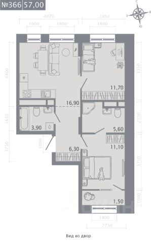 Продаётся 2-комнатная квартира в строящемся доме (Корпус 2), срок сдачи: I-кв. 2029, общей площадью 57 кв.м., на 11 этаже.