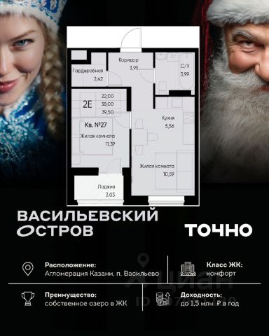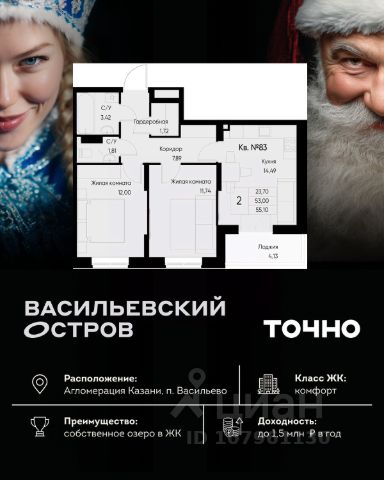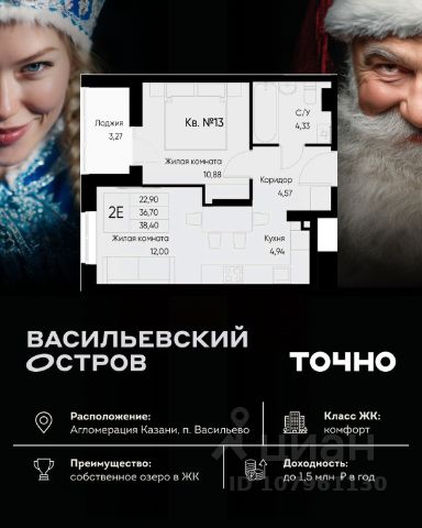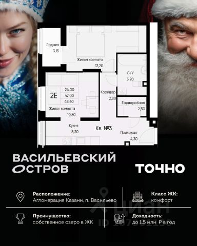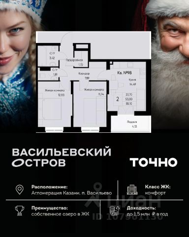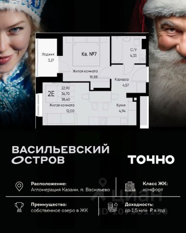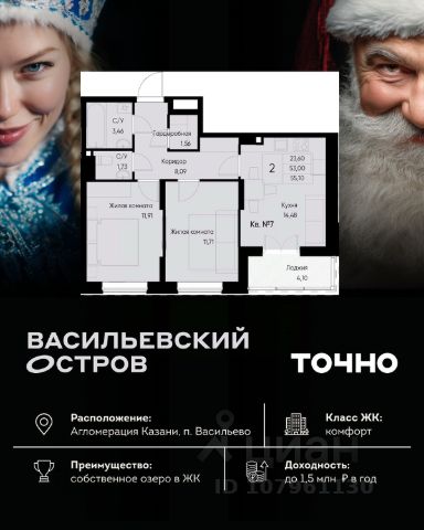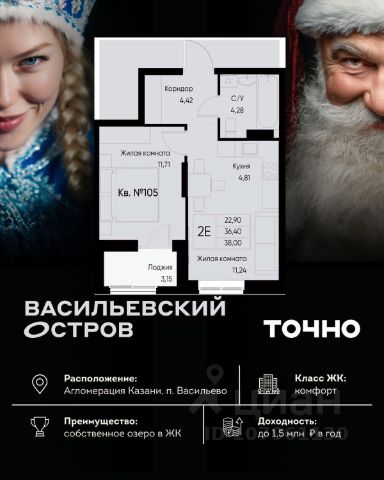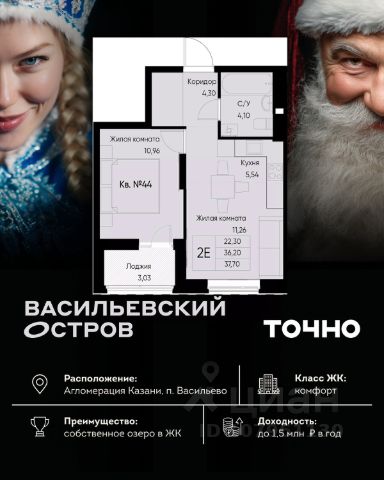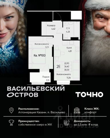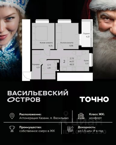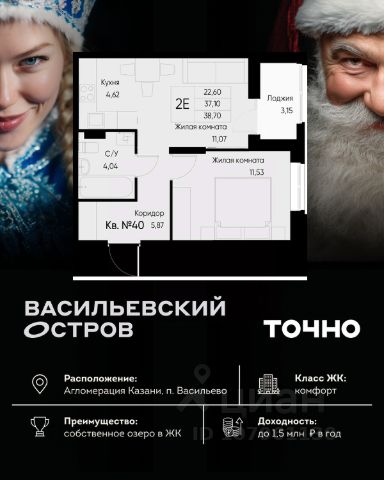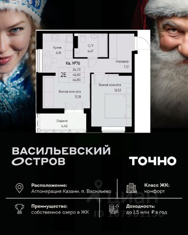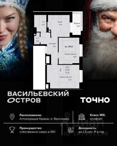 ЖК "Васильевский остров" — масштабный проект ТОЧНО в Казанской агломерации. Просторная территория 88 Га спроектирована для комфортной жизни: озеро с набережной и пляжем, каток, зелёные маршруты. В проекте комплекса — школа на 1 224 места, 2 детских сада на 680 мест, детская и взрослая поликлиники, фитнес-центр с бассейном, термальный комплекс, фермерский рынок, магазины, кафе и рестораны.