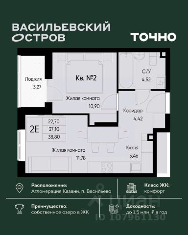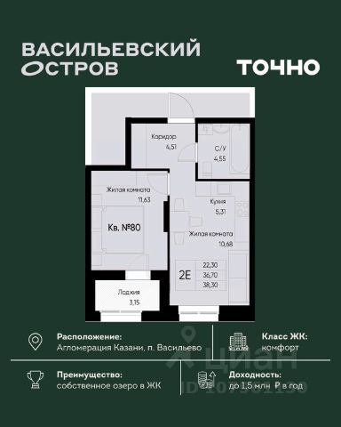 ЖК "Васильевский остров" — масштабный проект ТОЧНО в Казанской агломерации. Просторная территория 88 Га спроектирована для комфортной жизни: озеро с набережной и пляжем, каток, зелёные маршруты. В проекте комплекса — школа на 1 224 места, 2 детских сада на 680 мест, детская и взрослая поликлиники, фитнес-центр с бассейном, термальный комплекс, фермерский рынок, магазины, кафе и рестораны.