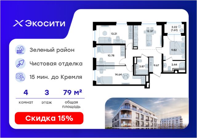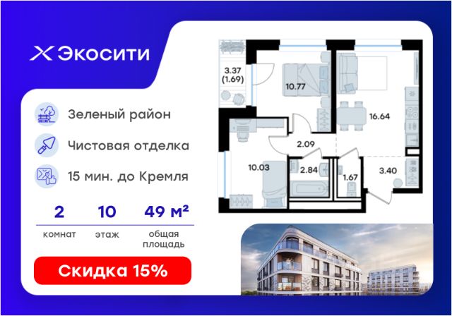 Продается 2-комн. квартира на 10-м этаже в строящемся проекте Экосити. Общая площадь лота составляет 48,16 кв. м, из которых 21,56 кв. м отведено под жилую и 11,56 кв. м под кухонную зону. Номер квартиры - 273 Преимущества квартиры в Урбан-квартале: • Квартира с полностью чистовой отделкой. В комнатах и коридоре: - натяжной потолок, - стены оклеены обоями под покраску, - полы: ламинат, плинтусы и напольная плитки - установлены межкомнатные двери и подоконники. В санузлах: - на стенах - керамогранитная плитка и/или окраска водостойкой краской - на полу - керамогранитная плитка; - натяжной потолок - сантехника: ванна и экран под ванну/душевой поддон, унитаз, раковины и смесители, монтаж водопровода и канализации - Предусмотрен расширенный пакет системы Умный Дом: бесключевой доступ в подъезд, видеодомофон с функцией Face ID, видеонаблюдение, автоматизированный сбор и передача показаний счётчиков; - На территории Урбан-квартала предусмотрено строительство детского сада на 360 мест, школы на 1501 место, детский развивающий центр на 2000 мест. - Рядом с с кварталом Резиденции запланировано строительство детского сада на 360 мест, школы с детским развивающим центром на 1501 место - На первых этажах домов Урбан-квартала запроектированы коммерческие помещения - предусмотрены места для супермаркетов, бытовых услуг, кафе. - Собственный комьюнити-центр для жителей Урбан-квартала - Клуб Резидентов для жителей квартала Резиденции - бульвар "Река между камней" с плейхабом для детей, амфитеатром, спортивными зонами, аллеей достижений. Всем посетителям будет доступен иммерсивный маршрут и AR-игры. - Тайная тропа вдоль которой расположатся зоны тихого отдыха, йоги и медитаций - 2 смотровые площадки - Снейк-ран - Круговой спортивный маршрут - Специальные зоны для выгула собак - В Урбан-квартале предусмотрено строительство 2 многоэтажных паркингов на 300 и 360 машиномест. Всем жителям проекта доступен и привычный плоскостной паркинг вокруг территории проекта с возможностью в приложении дома получить информацию о наличии парковочных мест. - В квартале Резиденции предусмотрен подземный паркинг на 260 машиномест Экосити — это совершенство города в первозданной природе. Наполненный возможностями квартал, в котором вы не выбираете между городом или природой, семьей или работой, отдыхом или спортом, — вы берете всё сразу. Каждая семья, каким бы составом она ни жила, найдет для себя идеальное пространство. Планировочные решения разнообразны, также как и возможности отделки от черновой до полностью с ремонтом. Здесь запроектированы квартиры с просторной кухней-гостиной, чтобы семья могла комфортно проводить время вместе. Квартиры сдаются с современной качественной отделкой, что позволяет после сдачи дома сразу начать жить, избежав долгих самостоятельных ремонтов. Цветовые решения и стиль отделки можно выбрать при покупке квартиры. Резиденции сдаются в черновой отделке, вы могли реализовать ваши самые смелые дизайнерские решения. Каждая резиденция это ба