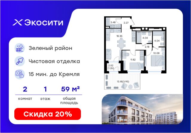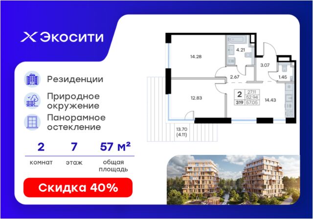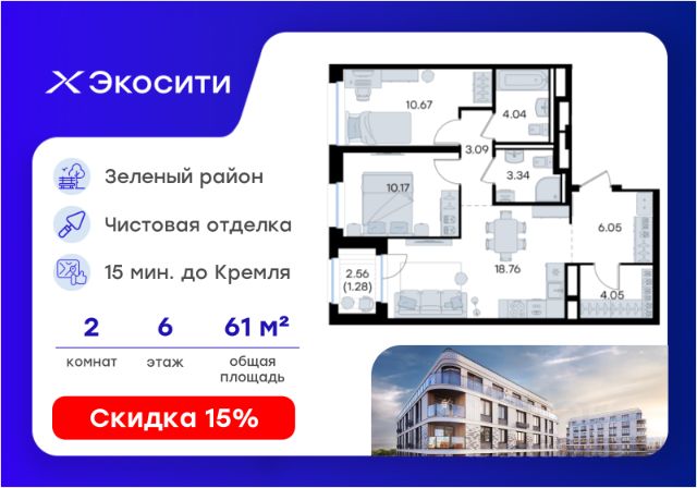 Продается 2-комн. квартира на 10-м этаже в строящемся проекте Экосити. Общая площадь лота составляет 44,39 кв. м, из которых 22,30 кв. м отведено под жилую и 12,65 кв. м под кухонную зону. Номер квартиры - 267 Преимущества квартиры в Урбан-квартале: • Квартира с полностью чистовой отделкой. В комнатах и коридоре: - натяжной потолок, - стены оклеены обоями под покраску, - полы: ламинат, плинтусы и напольная плитки - установлены межкомнатные двери и подоконники. В санузлах: - на стенах - керамогранитная плитка и/или окраска водостойкой краской - на полу - керамогранитная плитка; - натяжной потолок - сантехника: ванна и экран под ванну/душевой поддон, унитаз, раковины и смесители, монтаж водопровода и канализации - Предусмотрен расширенный пакет системы Умный Дом: бесключевой доступ в подъезд, видеодомофон с функцией Face ID, видеонаблюдение, автоматизированный сбор и передача показаний счётчиков; - На территории Урбан-квартала предусмотрено строительство детского сада на 360 мест, школы на 1501 место, детский развивающий центр на 2000 мест. - Рядом с с кварталом Резиденции запланировано строительство детского сада на 360 мест, школы с детским развивающим центром на 1501 место - На первых этажах домов Урбан-квартала запроектированы коммерческие помещения - предусмотрены места для супермаркетов, бытовых услуг, кафе. - Собственный комьюнити-центр для жителей Урбан-квартала - Клуб Резидентов для жителей квартала Резиденции - бульвар "Река между камней" с плейхабом для детей, амфитеатром, спортивными зонами, аллеей достижений. Всем посетителям будет доступен иммерсивный маршрут и AR-игры. - Тайная тропа вдоль которой расположатся зоны тихого отдыха, йоги и медитаций - 2 смотровые площадки - Снейк-ран - Круговой спортивный маршрут - Специальные зоны для выгула собак - В Урбан-квартале предусмотрено строительство 2 многоэтажных паркингов на 300 и 360 машиномест. Всем жителям проекта доступен и привычный плоскостной паркинг вокруг территории проекта с возможностью в приложении дома получить информацию о наличии парковочных мест. - В квартале Резиденции предусмотрен подземный паркинг на 260 машиномест Экосити — это совершенство города в первозданной природе. Наполненный возможностями квартал, в котором вы не выбираете между городом или природой, семьей или работой, отдыхом или спортом, — вы берете всё сразу. Каждая семья, каким бы составом она ни жила, найдет для себя идеальное пространство. Планировочные решения разнообразны, также как и возможности отделки от черновой до полностью с ремонтом. Здесь запроектированы квартиры с просторной кухней-гостиной, чтобы семья могла комфортно проводить время вместе. Квартиры сдаются с современной качественной отделкой, что позволяет после сдачи дома сразу начать жить, избежав долгих самостоятельных ремонтов. Цветовые решения и стиль отделки можно выбрать при покупке квартиры. Резиденции сдаются в черновой отделке, вы могли реализовать ваши самые смелые дизайнерские решения. Каждая резиденция это ба