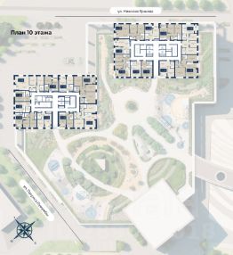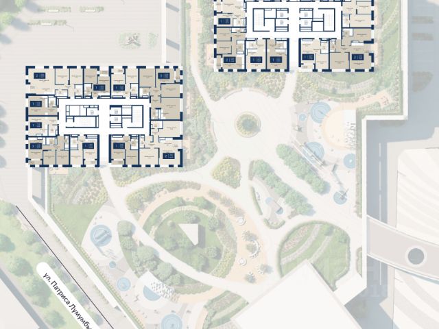 Пространство дома будет разделено на два уровня. Первый — общественный, с рестораном, входными группами и заездами в паркинг. Второй уровень — приватный. Здесь — лаунж-зоны, фонтан, игровые площадки, спортивное поле, интерактивные элементы и стена для рисования мелками. Пространство продумано так, чтобы жители чувствовали тишину, безопасность и гармонию — в центре города, но в ритме своего комфорта.