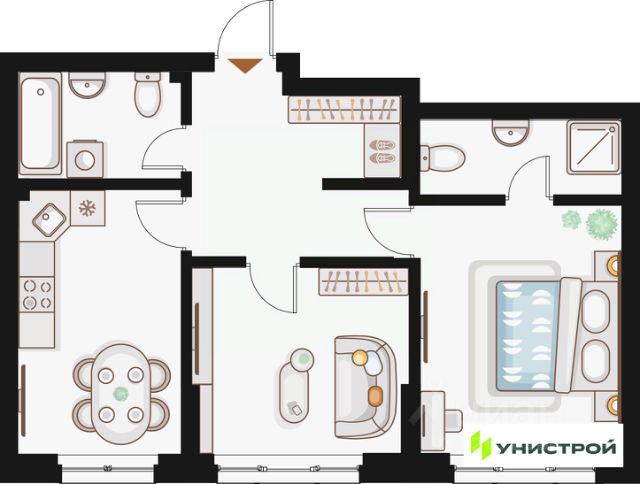 Продаётся 2-комнатная квартира в строящемся доме (Дом 14), срок сдачи: IV-кв. 2025, общей площадью 55.84 кв.м., на 10 этаже. Расположение, транспортная доступность