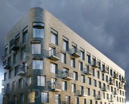 Комплекс состоит из 3 домов высотностью 9-20 этажей квартальной застройки. Между собой дома объединяют прогулочные зоны.Природные светлые и тёмные тона в отделке экстерьера и общественных пространств создают уют и визуальный комфорт. Фасады из крупноформатных панелей с подсветкой.