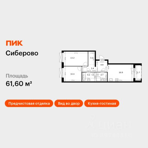 Продаётся 2-комн. квартира площадью 57,1 кв.м на 10 этаже 16 этажного дома (Корпус 3, Секция 1) проекта ПИК Сиберово. Светлый просторный подъезд на уровне земли, функциональная планировка, большие окна, предчистовая отделка. "Сиберово" - жилой квартал на улице Журналистов с парками в каждом дворе, школой и двумя детскими садами. До центра Казани - 15 минут пути на машине. Переменная высота домов от 7 до 26 этажей создаёт ощущение простора, а солнечному свету позволяет беспрепятственно проникать во дворы и квартиры. С верхних этажей откроется панорамный вид на реку Казанку, "Ак Барс Арену" и центр семьи "Казан". Жилой квартал отметили на форуме "Казаныш", где награждают лучшие архитектурные проекты Казани. В 2023 году проект оказался в двух номинациях: "Лучшее благоустройство территорий" и "Лучшая архитектурно-градостроительная подсветка". В "Сиберово" будет всё необходимое для комфортной жизни: на первых этажах разместятся магазины, кафе и полезные сервисы. Внутри жилого квартала запланировано строительство школы и двух детских садов. Для удобства жителей будут подземные паркинги в каждом доме, четыре наземных многоуровневых паркинга, индивидуальные кладовые и колясочные. В каждом дворе будет парк - тихое приватное пространство для жителей, где можно расслабиться после рабочего дня. Здесь красиво и уютно в любое время года. Через весь квартал протянется широкий пешеходный бульвар с велодорожками, велопарковками, зонами для отдыха, детскими и спортивными площадками. Входы в подъезды в "Сиберово" сделаны на уровне земли: по территории квартала удобно перемещаться и пешком, и на самокате, и с коляской. Первые этажи просторные и светлые: панорамное остекление пропускает много естественного света, а высота потолков доходит до пяти метров. Все квартиры сдаются в предчистовой отделке: с ровными белыми стенами, готовой гидроизоляцией, стяжкой полов, разводкой систем отопления, с окнами с надёжным пластиковым профилем. Вам останется только выбрать цвета и материалы для косметического ремонта, чтобы оформить квартиру на свой вкус. Вокруг "Сиберово" развитый район города: рядом детские сады, школы, колледж, поликлиники и торговые центры. До центра отсюда всего 15 минут на машине. Артикул 1025149 (Застройщик ООО "СЗ МТ ДЕВЕЛОПМЕНТ")