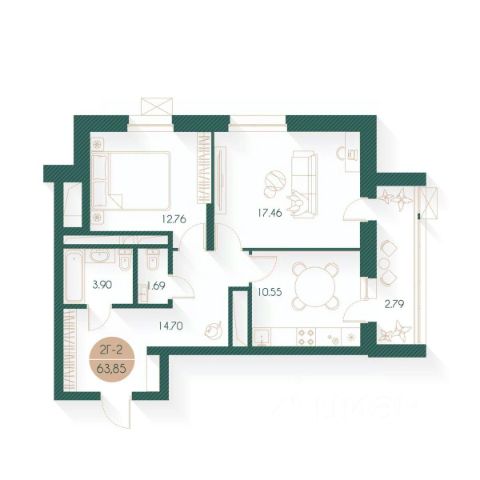 Продаётся 2-к квартира номер 63 общей площадью 66.3 кв.м. на 11-м этаже 20 этажного здания. Предчистовая отделка. Цена с учётом скидки.