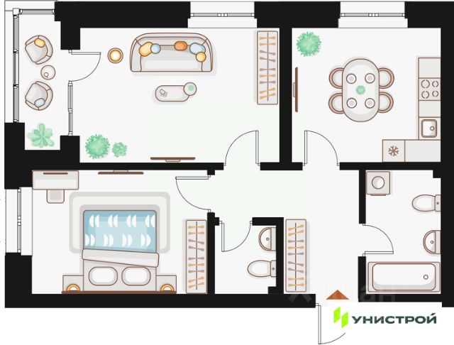 Уникум на Проспекте Победы "Уникум на Проспекте Победы" — проект от компании "Унистрой" в Казани. Жилой дом состоит из двух секций переменной высотности 7-25 этажей и гармонично вписывается в городское пространство. Жилой проект задает тренд на инклюзивную среду. Ту, в которой есть возможности для активной жизни и отдыха в пределах "Уникума". Проект отвечает ключевым запросам современного жителя большого города. Комфорт. Эстетика. И всё необходимое для успешной жизни рядом. "Уникум" — это лёгкая архитектура, стильное благоустройство и комфортное пространство для вашей жизни и отдыха. Развитый район "Уникум на Проспекте Победы" расположен в Советском районе Казани. Аэропорт находится в 25 минутах езды, ТЦ "Мега" и "Южный" в 10 минутах ходьбы, а остановка "Закиева" в двух минутах. В шаговой доступности фитнес-клубы, салоны красоты, медицинские центры и поликлиника. Для семей с детьми детский сад в доме, школы 156, 144, 167, 187 и 171 поблизости. Функциональность и эстетика "Уникум на Проспекте Победы" гармонично вписывается в городской ландшафт. Фасад в бежевых тонах с декоративным кирпичом соответствует современным требованиям к эстетике. На первых этажах коммерческие помещения для магазинов, кофеен и офисов, выполненные в едином стиле. Просторные холлы с высотой потолков 4,2 метра, подсветкой, современным дизайном и комфортной мебелью создают уютную атмосферу. Предусмотрены бесшумные скоростные лифты и колясочные с зарядками для электросамокатов. Входные группы из стекла, домофоны в теплом тамбуре, система грязезащиты и навигация обеспечивают удобство и безопасность. Френдли-среда и урбанистические тренды двора Двор "Уникума на Проспекте Победы" это френдли-среда, урбанистические тренды и баланс между отдыхом и работой. Жилой комплекс предлагает многообразие общественных пространств, а также фитнес-площадку, воркаут-зону, детские площадки для разных возрастов. Велопарковки у каждого подъезда, подземный паркинг и открытые машиноместа. Уникальные планировочные решения Жилой дом предлагает большое разнообразие планировок: студии, 1-комнатные, 2-комнатные (в том числе с европланировкой), просторные 3-комнатные. Квартиры с мастер-спальнями, гардеробными, видовые, с панорамными и угловыми окнами. Увеличенные оконные проёмы для создания светлого пространства. Лёгкое решение бытовых вопросов В "Уникуме на Проспекте Победы" обеспечивается подача чистой воды в каждую квартиру. Автоматическая передача данных учета воды, электричества и тепла в сервисную компанию через мобильное приложение. Электронные замки на входных дверях с дистанционным управлением. Паркинг "Уникум на Проспекте Победы" включает подземный паркинг со спуском на лифте. В нём 222 места для ваших автомобилей, 16 семейных и еще гостевые места. Паркинг, как и внутренний двор, охраняется и оборудован видеонаблюдением. Республика Татарстан, Казань, Проспект Победы , 001 кв.72