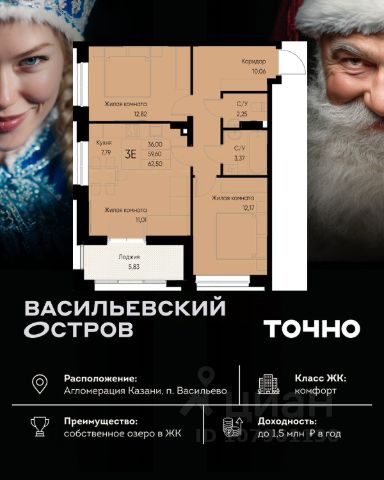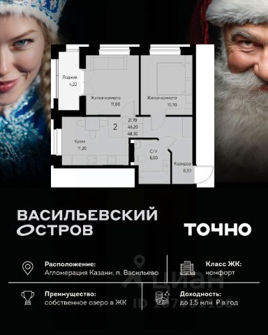 Продаётся 2-комнатная квартира в строящемся доме (Дом 1), срок сдачи: I-кв. 2027, общей площадью 60.8 кв.м., на 11 этаже. Новый жилой комплекс "Акварели на ВЫСОТЕ" от застройщика "Шаги к успеху" расположен по адресу: Республика Татарстан, Зеленодольск, микрорайон Мирный