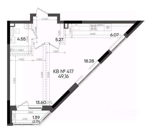 Гостиная 21,8м2 с отличным видом из окна и с выходом на балкон 2,5м2