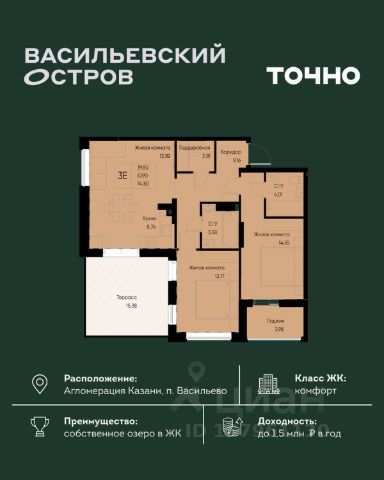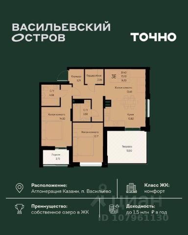 • ✓ В базе Циан 3 2-комнатных квартир на 12 этаже в Зеленодольске
