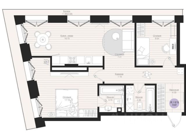 В доме представлен широкий выбор планировок: квартиры с просторными террасами, пентхаусы, мастер-спальнями с личными ванными и гардеробными, угловыми окнами и продуманной геометрией света. Также в проекте — форматы 3-, 4- и 5-комнатных квартир.