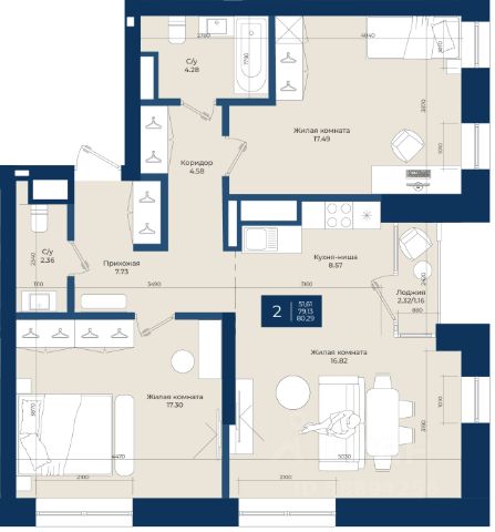 Жилой комплекс "NOVA" Квартира 116 общей площадью 80,29 м2 на 13 этаже. "NOVA" —жилой комплекс бизнес-клаcсa oт зaстройщикa НоваСтрой. Все преимущества высокого бизнес-класса собраны в одном месте. На территории ЖК расположены торговые галереи, прогулочный бульвар, спортивная и детская площадки, двор-парк и фитнес-клуб. При этом зоны, доступные только для жильцов, отделены от общественных пространств, что сохраняет приватность, спокойствие и безопасность жителей комплекса. В проекте представлены квартиры с террасами, с которых открываются панорамные виды на центр города и другие эксклюзивные форматы: квартиры с патио, квартиры с увеличенными потолками до 4,8 м., пентхаусы с отдельным доступом в лифт на верхних этажах жилых башен. Во всех квартирах выполнена качественная предчистовая отделка. Звоните — наши менеджеры предоставят вам полную информацию о текущих акциях, помогут одобрить ипотеку и предложат наиболее подходящий вариант в жилом комплексе "NOVA"