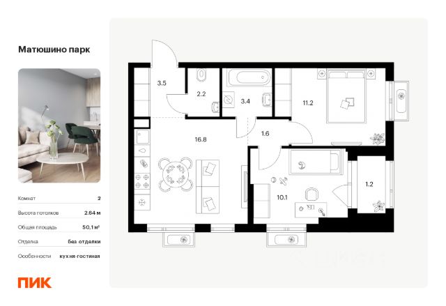Продаётся 2-комн. квартира площадью 46,8 кв.м на 13 этаже 22 этажного дома (Корпус 2, Секция 1) проекта ПИК Матюшино парк. Светлый просторный подъезд на уровне земли, функциональная планировка, большие окна, предчистовая отделка. "Матюшино парк" - проект ПИК в Приволжском районе Казани. Квартал отличается удобным расположением. До центра города можно добраться всего за 20 минут на автомобиле или на электричке от станции "Южный парк". Проект находится в экологически чистом окружении. В пешей доступности лесопарк - Девликеевский лес, который идеально подходит для неспешных прогулок. Жители квартала смогут доехать до берега Волги, где можно активно провести время и насладиться живописными видами. Квартал состоит из 20 корпусов с современной архитектурой. В "Матюшино парке" будет всё необходимое для комфортной жизни. На первых этажах разместятся магазины, кафе и полезные сервисы, а во дворе появится зелёный парк и общественное пространство для отдыха и занятий спортом. В проекте запланированы современные детские сады, школа и поликлиника. Артикул 981715