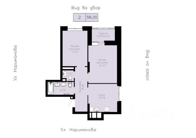Продаётся 2-комнатная квартира в строящемся доме (Дом 4.2), срок сдачи: II-кв. 2028, общей площадью 60.3 кв.м., на 2 этаже. Жилой комплекс "Озерный" в поселке "Чаллы Яр", г. Набережные Челны.