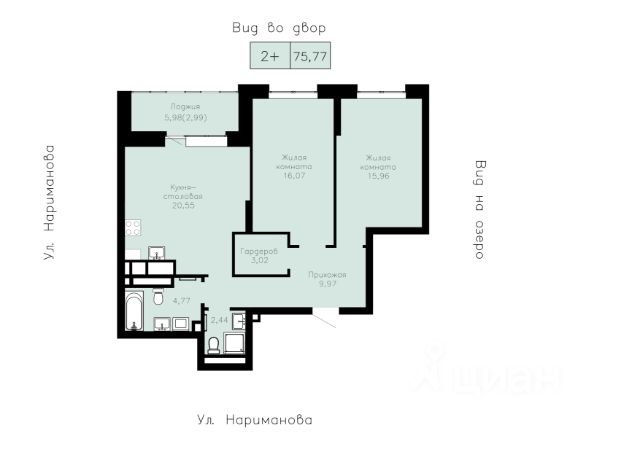 Продаётся 2-комнатная квартира в строящемся доме (Дом 4.2), срок сдачи: II-кв. 2028, общей площадью 68.77 кв.м., на 2 этаже. Жилой комплекс "Озерный" в поселке "Чаллы Яр", г. Набережные Челны.