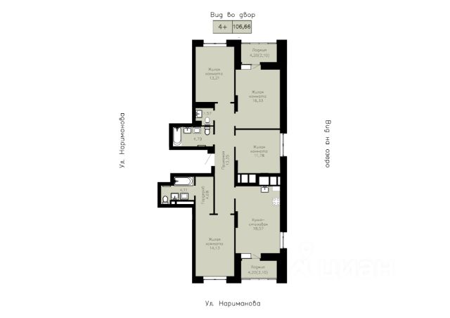 Продаётся 4-комнатная квартира в строящемся доме (Дом 4.2), срок сдачи: II-кв. 2028, общей площадью 110.86 кв.м., на 6 этаже. Жилой комплекс "Озерный" в поселке "Чаллы Яр", г. Набережные Челны.