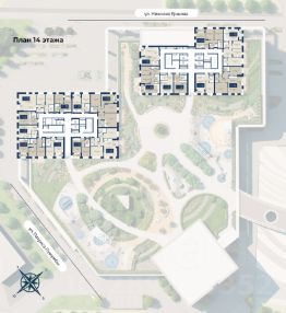 Пространство дома будет разделено на два уровня. Первый — общественный, с рестораном, входными группами и заездами в паркинг. Второй уровень — приватный. Здесь — лаунж-зоны, фонтан, игровые площадки, спортивное поле, интерактивные элементы и стена для рисования мелками. Пространство продумано так, чтобы жители чувствовали тишину, безопасность и гармонию — в центре города, но в ритме своего комфорта.